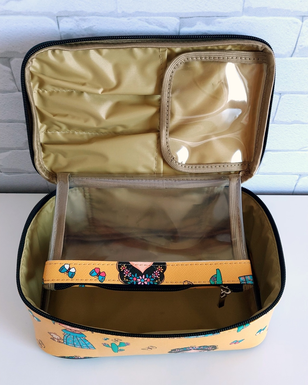 Necessaire prática e útil para organizar produtos de maquiagem. Impermeável por fora e por dentro facilitando a limpeza.
