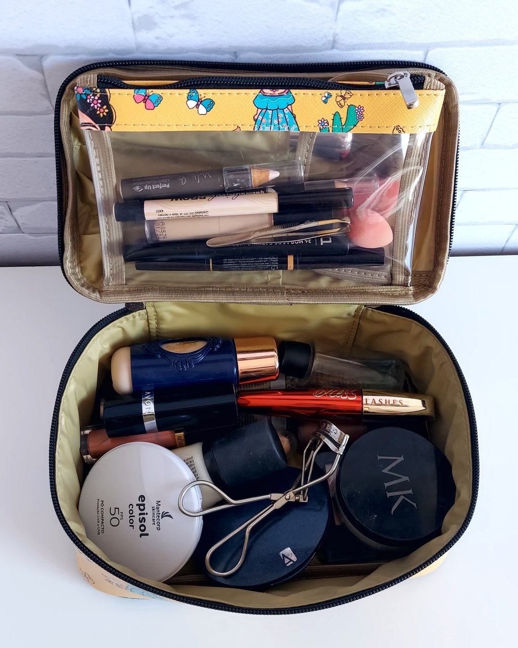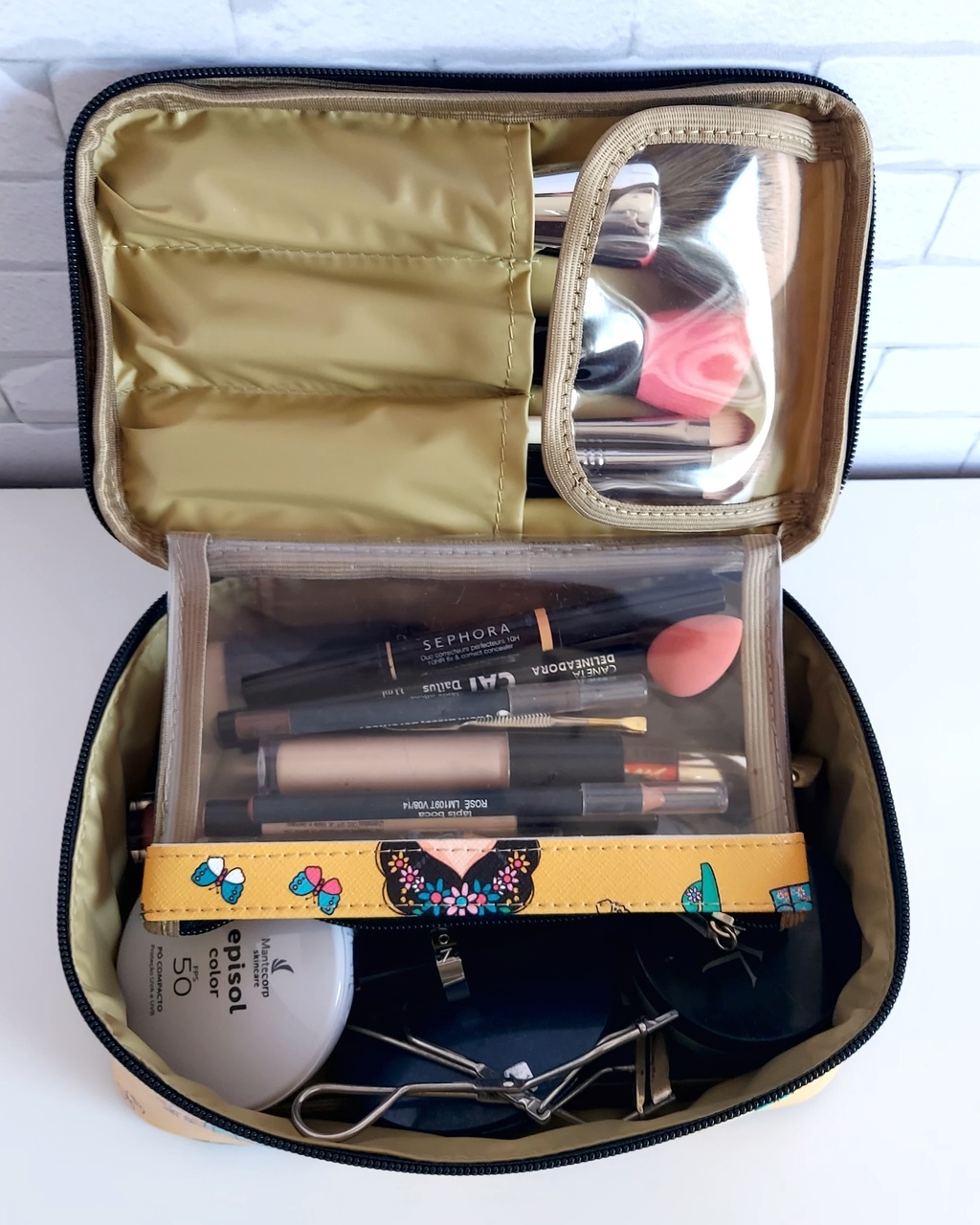 - Possui uma necessaire transparente acoplada no interior da necessaire
